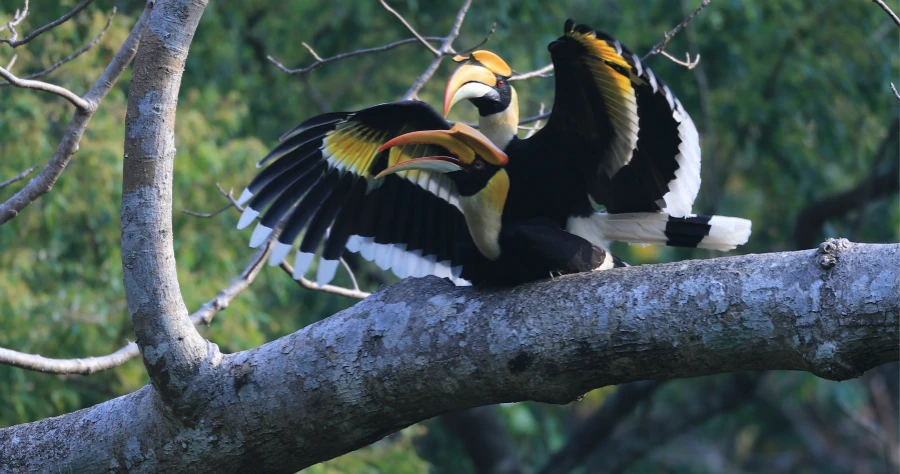 双角犀鸟“踩背”(曾祥乐 摄影)