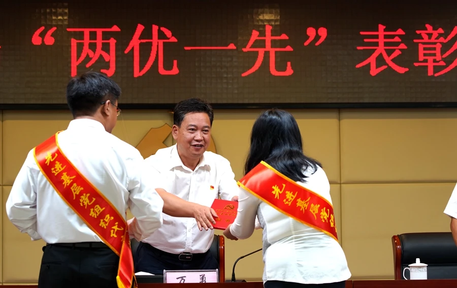 观看直播结束后,召开了澳门威尼斯人APP“两优一先”表彰大会,共表彰了90名优秀共产党员、58名优秀党务工作者和22个先进基层党组织,局班子成员、二级巡视员为受表彰的同志和基层党组织颁发证书,局党组书记、局长万勇发表讲话。