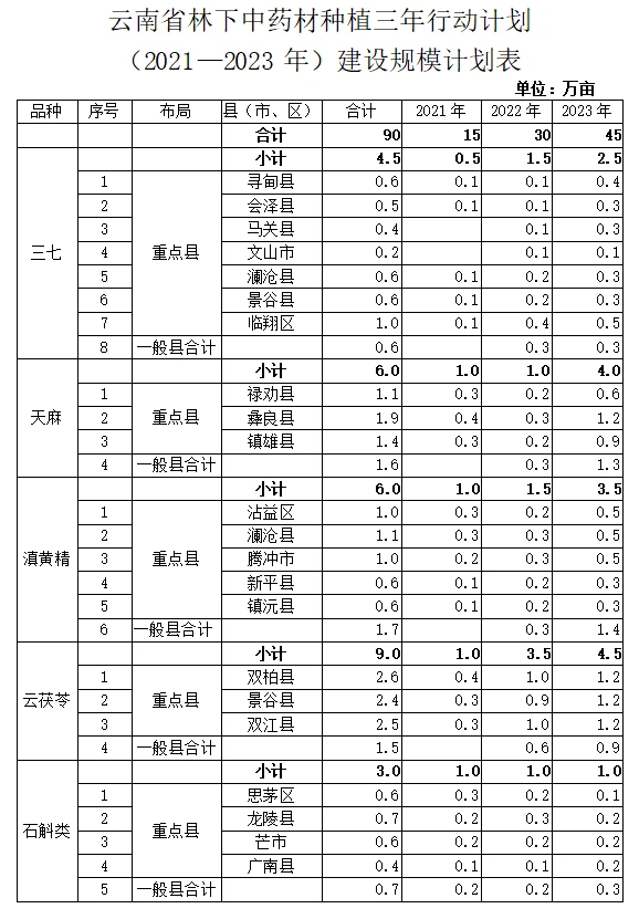 4.云南省林下中药材种植三年行动计划(2021—2023年)建设规模计划表