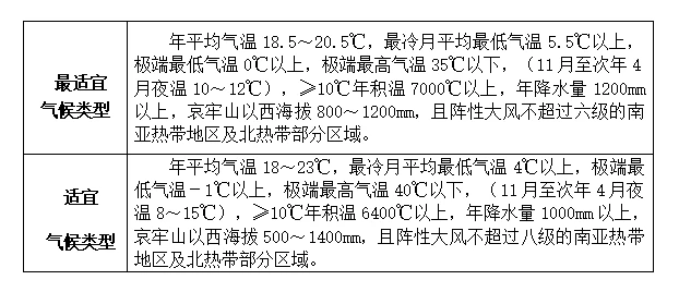 (1)澳洲坚果栽培适宜区划分:澳洲坚果原产于澳大利亚昆士兰州东南部和南威尔士州北部的沿海亚热带雨林,属南亚热带常绿树种。云南省是世界上为数不多,具有规模化种植澳洲坚果的条件,适宜区热量充足,雨量充沛,无台风侵扰,是发展澳洲坚果产业最适宜省份。