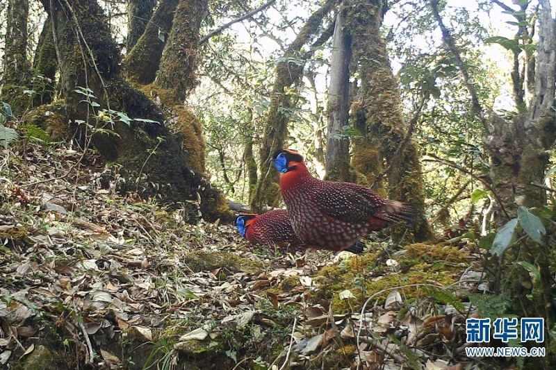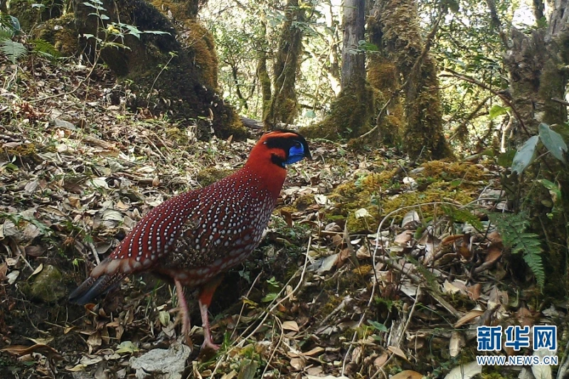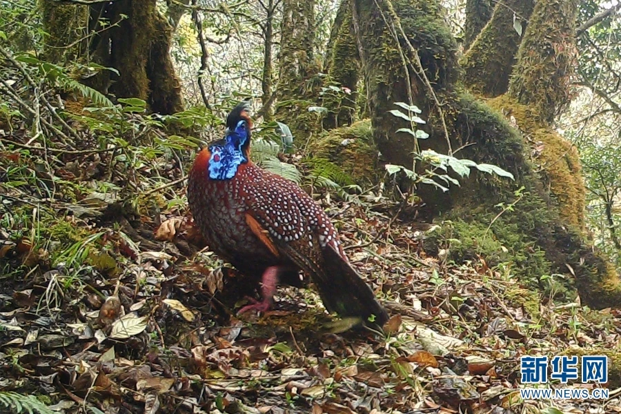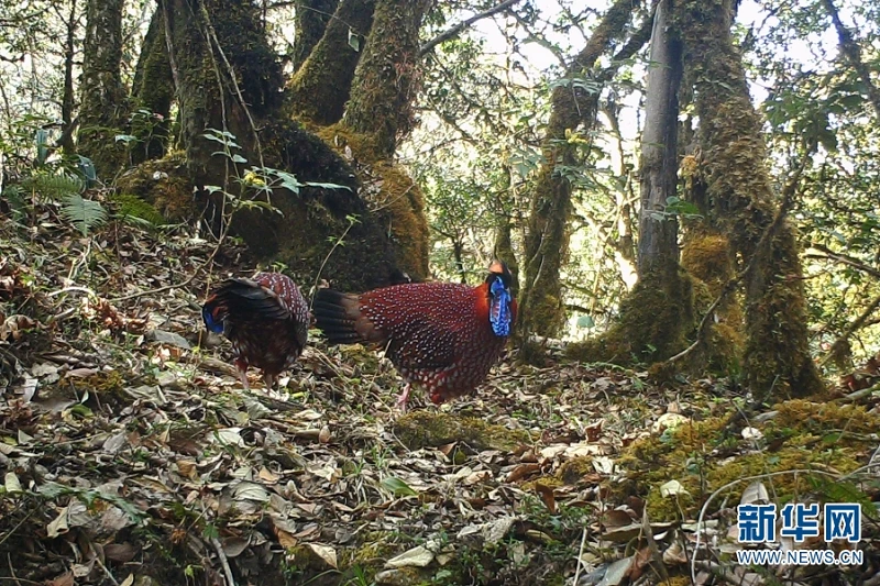 红外相机拍摄到的红腹角雉。新华网发(保山龙陵小黑山省级自然保护区供图)