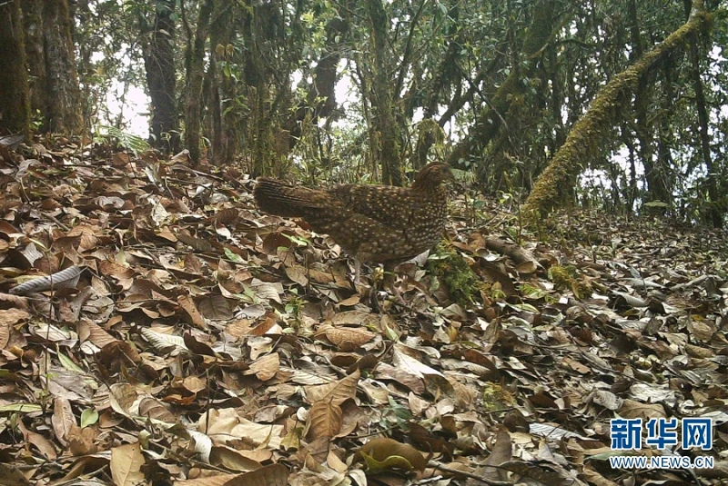 红外相机拍摄到的红腹角雉(雌)。新华网发(保山龙陵小黑山省级自然保护区供图)