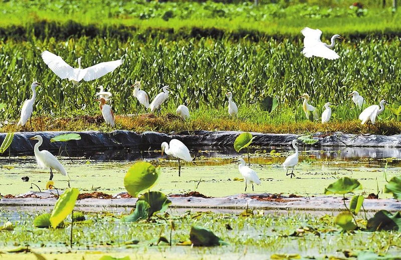 盛夏时节,巍山彝族回族自治县29万亩玉米、水稻等大春作物长势喜人,良好的生态环境吸引了大批白鹭前来安家,构成一幅美丽的生态画卷。