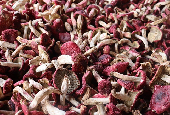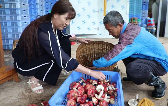 “每到出菌子的季节,一些菌子多的村,我们都联系村民帮我家收购,菌子出得少的时候,我自己就去村子里拉回来,只要是能吃的野生菌我都收,根据野生菌的种类、大小、质量、新鲜野生菌的价格在30到130元每公斤不等,多的时候每天能收购到1吨多新鲜菌,少的时候每天也能收到600多斤新鲜菌。一年下来收购菌子的钱差不多需要几十万元,净收入也有好几万元了。”李永兰笑着说,收来的野生菌经过冷冻或切片烤干、装袋等一系列处理后销往全国各地。