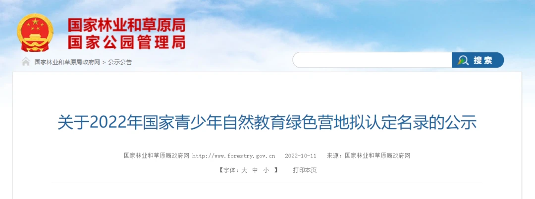 为深入贯彻习近平生态文明思想,提升广大青少年生态文明意识,全国关注森林活动组委会按计划开展了2022年国家青少年自然教育绿色营地认定工作。根据工作部署,在各省(区、市)关注森林活动组委会推荐的基础上,经全国关注森林活动执委会组织专家集中评审,产生了40个国家青少年自然教育绿色营地拟认定名录。为广泛听取意见,接受社会监督,现将拟认定名录予以公示,公示时间从2022年10月11日8时起,至10月17日17时止。本公示在国家林业和草原局网、绿色中国网络电视同时发布。如对拟认定名录有异议,请于公示期间通过电话、邮件、信函等方式向全国关注森林活动执委会办公室反映,并提供必要的证明材料(信函以到达日邮戳为准)。