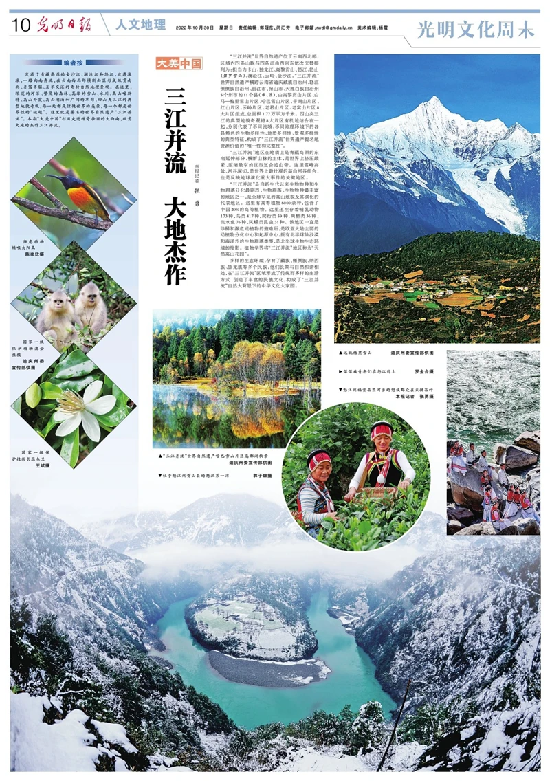 多样的生态环境,孕育了藏族、傈僳族、纳西族、独龙族等多个民族,他们长期与自然和谐相处,在“三江并流”区域形成了传统而多样的生活方式,创造了丰富的民族文化,构成了“三江并流”自然大背景下的中华文化大家园。