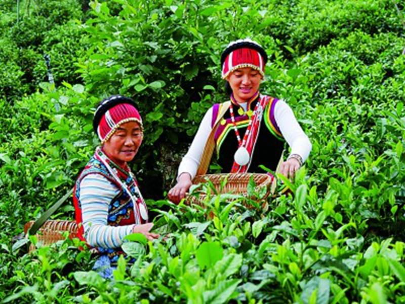怒江州福贡县匹河乡的怒族群众在采摘茶叶 本报记者 张勇摄