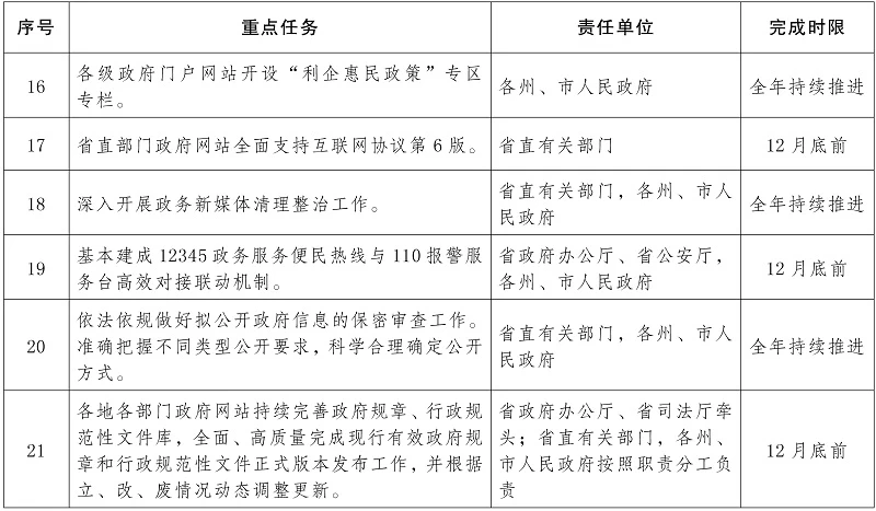 (一)提升政府网站和政务新媒体运维管理水平。各级政府门户网站要开设“利企惠民政策”专区专栏,强化政策集成服务。升级改造“云南省政府信息依申请公开平台”系统,逐步实现全省政府信息公开在线申请“一张网”。加快推进政府网站集约化建设,推动全省政府网站在数据、平台、服务、应用、管理等多方面集约。省直部门政府网站要全面支持互联网协议第6版。深入开展政务新媒体清理整治工作,及时注销“僵尸”账号,完善账号信息,严格开办管理,未经报备不得向第三方平台申请开设账号。强化政务新媒体矩阵建设,与新闻、网信部门加强协同联动,及时准确传递党和政府权威声音。严格落实网络意识形态责任制,加强内容审核把关,依法保护个人信息权益,强化监测预警和应急处置,确保政府网站和政务新媒体安全平稳运行。按时规范办理“我为政府网站找错”和“云南省政府网站曝光台”网民留言。(省政府办公厅牵头;省直有关部门,各州、市人民政府按照职责分工负责)