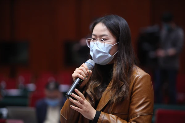 人民日报记者现场提问(记者 赵嘉 摄影)