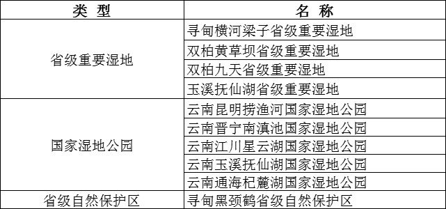 表3-3 滇中、滇东湿地单元重要湿地/湿地类型保护地名录