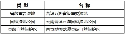表3-5 滇南湿地单元重要湿地/湿地类型保护地名录
