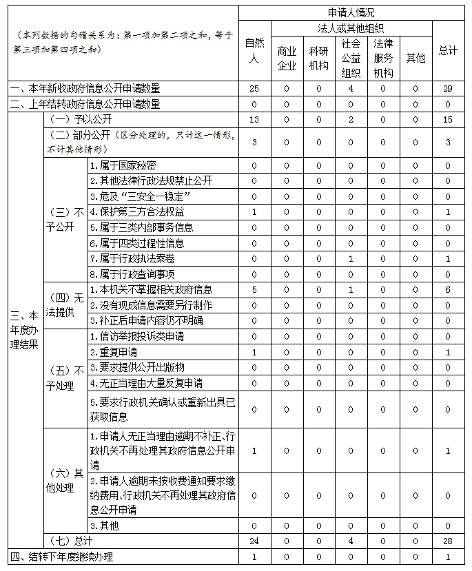 (二)依申请公开方面。畅通线上、线下5种申请渠道,工作规范化水平持续提升。2022年,共受理政府信息公开申请29件。其中,办结28件,结转2023年办理1件,未发生投诉举报、行政复议、行政诉讼等相关情况。