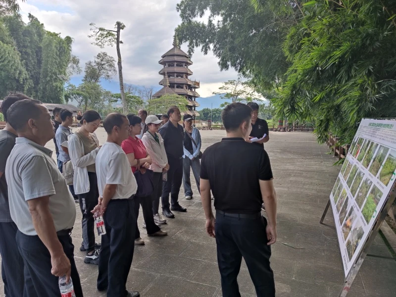 工作组重点调研了盈江县国家湿地公园林地薇甘菊防控、盈江县太平镇小庙林地薇甘菊防治样板、云南铜壁关省级自然保护区管护局2022年林地薇甘菊防治精品示范项目、瑞丽市姐勒水库生态修复控制薇甘菊效果以及芒市城区周边外来入侵物种防控等。