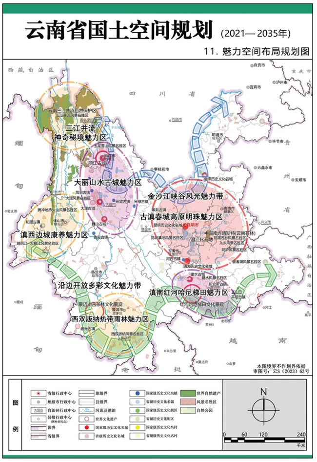 魅力彰显。坚持以人为本,优化城市(镇)群、城镇带、都市圈、城镇圈、县城空间资源配置,实现公共服务设施均等化,提升公共空间和开敞空间水平,营造健康、舒适、便利的高品质城镇空间。以人居环境改善、一二三产业融合发展为重点,建设生态优美、宜居宜业和美乡村。统筹历史文化和自然景观保护发展,彰显“七彩云南”的民族文化和自然山水之美。
