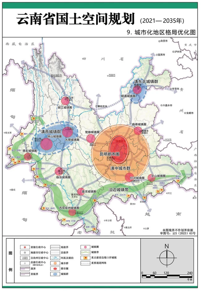 高质量发展指明新方向。党的二十大提出构建优势互补、高质量发展的区域经济布局和国土空间体系。《全国纲要》要求改变规模驱动、粗放利用的空间开发模式,深化空间供给侧结构性改革,注重存量空间资源利用,着力优化农业、生态、城镇空间和公共服务设施、基础设施布局,促进资源要素在区域和城乡之间合理配置,提升空间功能品质,为云南省高质量跨越式发展指明新方向。