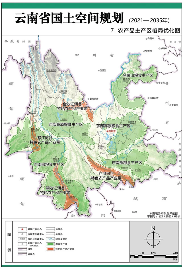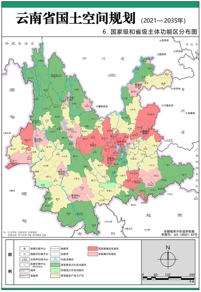 优化主体功能分区。以保障粮食安全为基础,提高重要农产品保障供给能力,依据现状耕地和永久基本农田集中分布情况、水土条件变化和高原特色现代农业发展要求,将38个县(市、区)划定为重点农产品主产区,主要集中分布在临沧市、普洱市、曲靖市、保山市等州(市)。以筑牢西南生态安全屏障为基础,落实青藏高原生态屏障区、长江重点生态区(含川滇生态屏障)等国家生态安全屏障体系建设要求,加强重要自然保护地、六大水系和九大高原湖泊保护,将46个县(市、区)划定为重点生态功能区,主要集中分布在迪庆州、怒江州、丽江市、文山州等州(市)。根据人口变化、新型城镇化和区域协调发展要求,统筹城市(镇)群、城镇带、都市圈、城镇圈空间资源配置,将45个县(市、区)划定为城市化地区,主要集中分布在昆明市、曲靖市、玉溪市、红河州等州(市)。