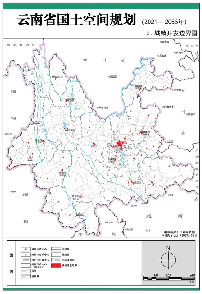 合理划定城镇开发边界。在优先划定耕地和永久基本农田、生态保护红线的基础上,避让地质灾害极高风险区和高风险区等不适宜城镇建设区域(确实无法避让的应当充分论证并说明理由,明确减缓不良影响的措施),尊重自然地理格局、人口变化趋势、城镇化发展特征和存量建设用地现状,合理划定城镇开发边界,引导形成蓝绿交织、山环水绕的适度集中式或组团式布局,优化城镇空间布局。云南省城镇开发边界面积控制在2020年现状城镇建设用地规模的1.3倍以内,重点在滇中城市群涉及的曲靖市、红河州、昆明市、楚雄州、玉溪市集中划定57%以上的城镇开发边界。