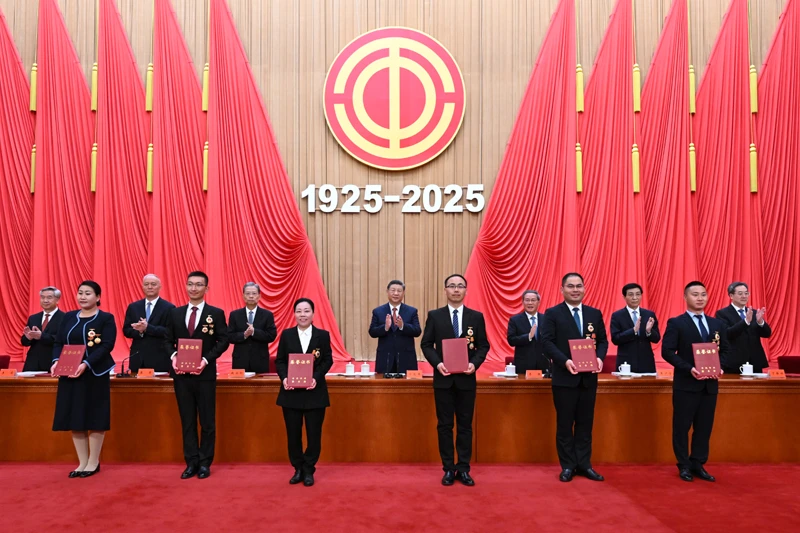庆祝中华全国总工会成立100周年暨全国劳动模范和先进工作者表彰大会隆重举行
