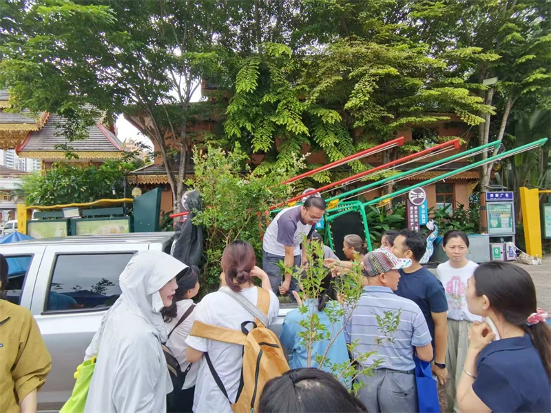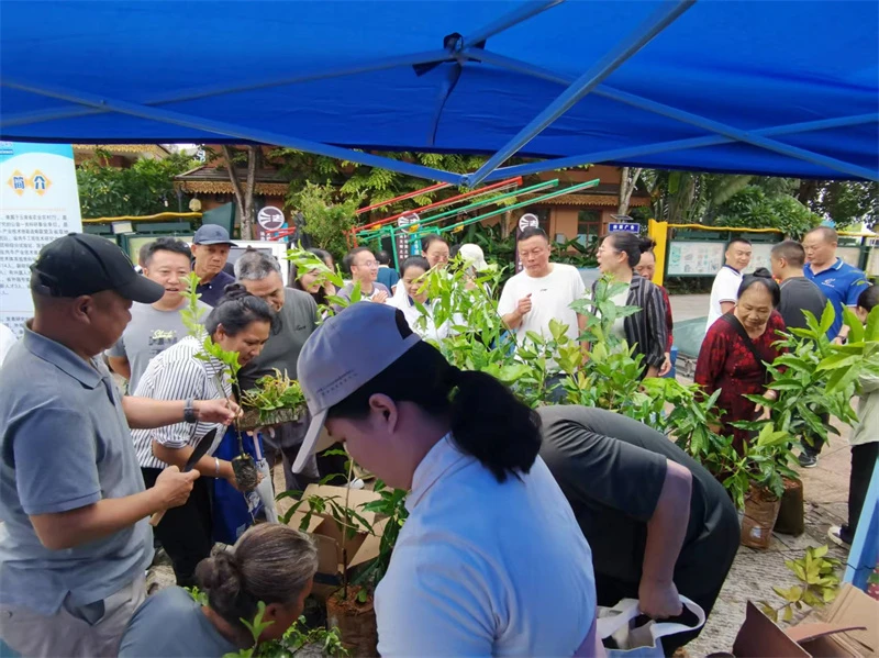 在勐腊县西丽园民族文化广场的集中示范活动中,省林科院全方位展示了近年取得的科技成果。现场发放热区适生良种水果苗木20余种共600余棵,涵盖黄晶果、巴西甜樱桃等特色品种;科技人员同步发放农村适用科普技术手册20余种700余册,并向林农赠送枝剪、枝锯、小铲子等生产工具,切实解决农户生产需求。