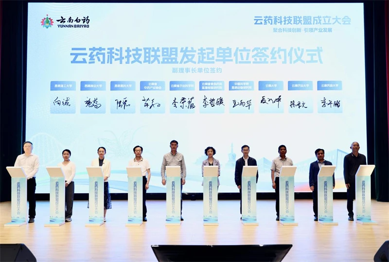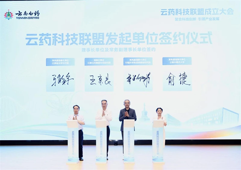 云南白药集团中央研究院担任首届联盟理事长单位,云南省科学技术院、中国科学院昆明植物研究所、云南中医药大学担任常务副理事长单位,秘书处设在云南白药集团中央研究院。云南白药集团中央研究院、云南省科学技术院、中国科学院昆明植物研究所、云南中医药大学、云南省食品药品监督检验研究院、中国科学院昆明动物研究所、云南省农业科学院、云南农业大学、云南省中药产业协会、昆明医科大学、云南大学、昆明理工大学、云南民族大学、西南林业大学、云南省中医医院、云南省中医中药研究院、澳门威尼斯人博彩官网和草原科学院、澳门威尼斯人博彩官网调查规划院、云南省农业技术推广总站、澳门威尼斯人博彩官网和草原技术推广总站、云南省农业工程研究设计院、昆药集团股份有限公司、云南植物药业有限公司、云南省绿色食品发展中心等24家发起单位完成签约,36名人员获颁聘书。