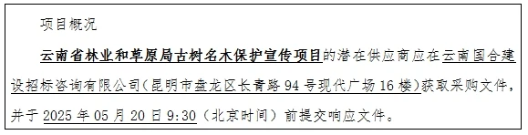 6.采购需求:(1)依据全国古树名木智慧管理系统数据,对全省约两百株千年古树名木开展健康诊断,形成全省千年古树名木健康诊断报告。(2)拍摄千年古树名木宣传视频,视频总时长不少于30分钟,确保画面清晰美观。视频全面反映云南古树名木种类、景观、文化多样性和保护成效。(3)制作云南省千年古树名木图册。(4)承办2025年全省古树名木保护宣传周活动,包括千年古树名木摄影大赛、组织专家到全省16个州市开展古树名木宣传保护与复壮技术培训、印制云南省古树名木宣传资料。