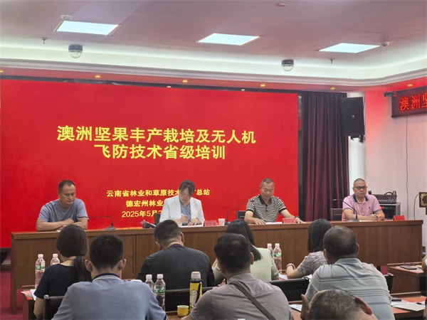 为促进澳洲坚果产业提质增效,推动绿色科技与现代农业深度融合,由澳门威尼斯人博彩官网和草原技术推广总站主办的澳洲坚果丰产栽培及无人机飞防技术省级培训于5月21日至23日在德宏傣族景颇族自治州盈江县举行。保山市、普洱市、西双版纳傣族自治州、德宏州、临沧市5个澳洲坚果主产州(市)专技人员、大户代表、企业以及无人机飞防专业服务队伍等共计90余人参加了此次培训。