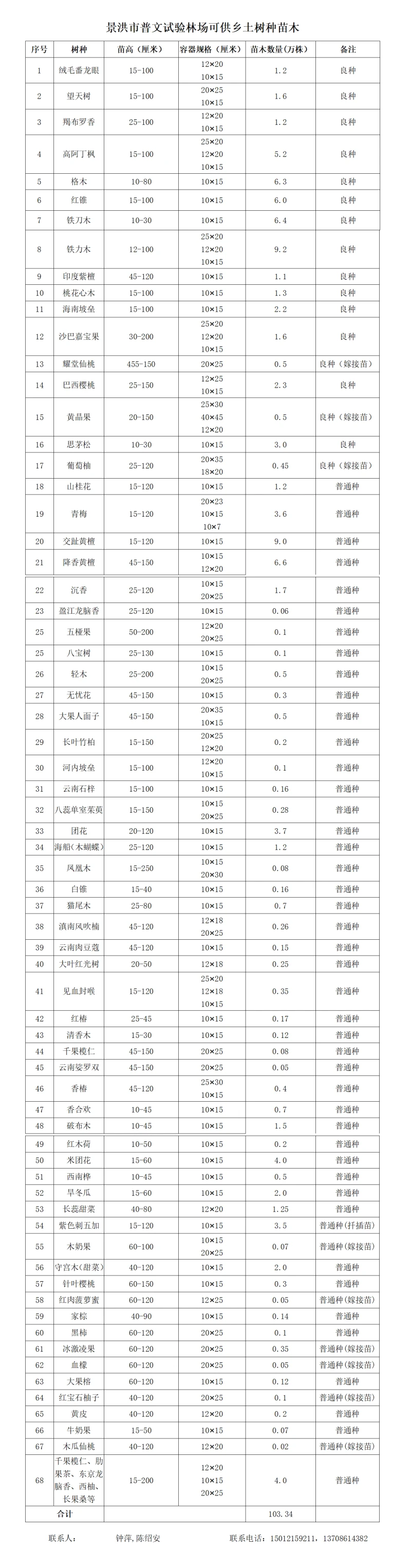 2025年,基地预计可提供铁力木、望天树、红锥、铁刀木、葡萄柚等17个树种的良种苗木50.05万株,交趾黄檀、云南肉豆蔻、团花、牛奶果等树种的普通苗木53.29万株。详情如下: