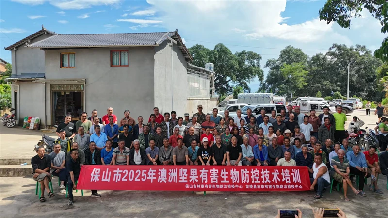 此次培训依托保山市2025年澳洲坚果病虫害防治示范项目,下一步将继续在2000亩项目区内开展树干涂白、“灯光+色板诱杀”、无人机飞防等有害生物综合防治技术示范,最终实现对周边澳洲坚果产区的辐射和带动作用。一颗小小的澳洲坚果,承载着乡村振兴的大梦想,当科学的“密码”被交到每一位种植者手中,在这片希望的田野和林间,必将结出更加丰硕的“黄金果”。