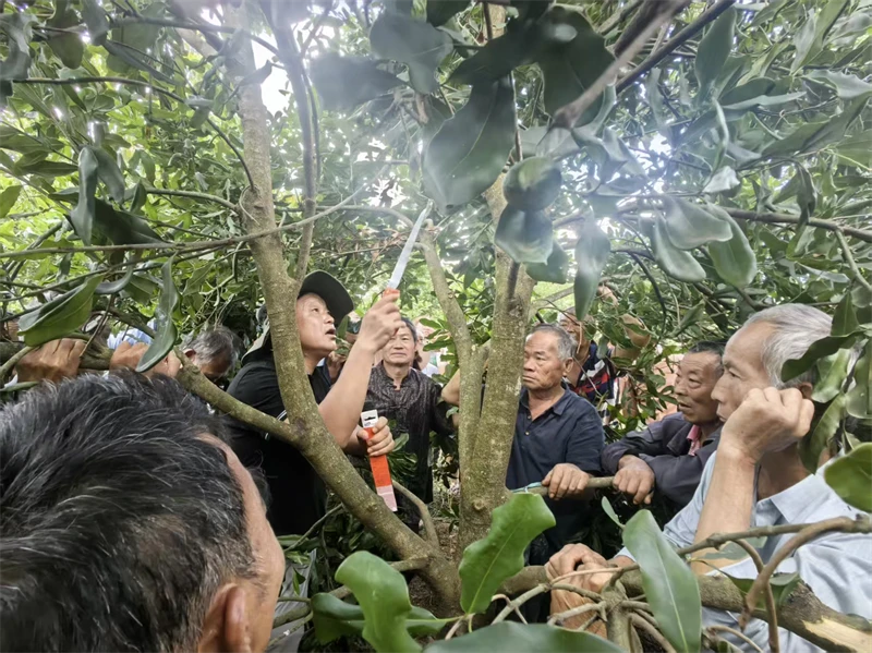 保山市各乡镇澳洲坚果产区陆续结束了当年采收,迎来修枝抚育和清园(防治越冬害虫和病原菌)的关键期。近日,在昌宁县卡斯镇和龙陵县勐糯镇的坚果地里,一场被林农们亲切称为“专家门诊”的林间课堂火热开展,而这堂课正是为守护“绿色财富”——澳洲坚果而专门开设的。