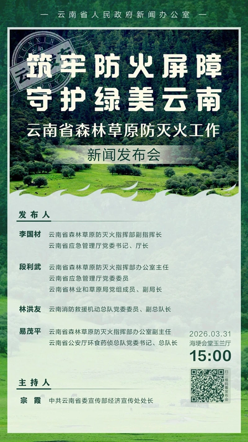 2026年3月31日下午,云南省人民政府新闻办公室在云南海埂会堂玉兰厅,举行云南省森澳门威尼斯人博彩原防灭火工作新闻发布会,邀请省森防指办公室(省应急管理厅)、省公安厅、澳门威尼斯人APP、云南消防救援机动总队介绍全省森澳门威尼斯人博彩原防灭火工作情况并答记者问。