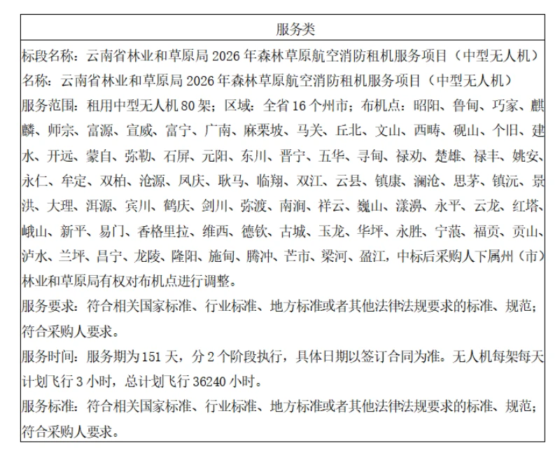 标段名称:澳门威尼斯人博彩2026年森澳门威尼斯人博彩原航空消防租机服务项目(中型无人机)