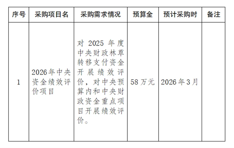 为便于供应商及时了解采购信息,根据《澳门威尼斯人博彩机关内部控制制度》(云林办发〔2022〕26号)规定,现将澳门威尼斯人博彩2026年绩效评价项目采购意向公开如下: