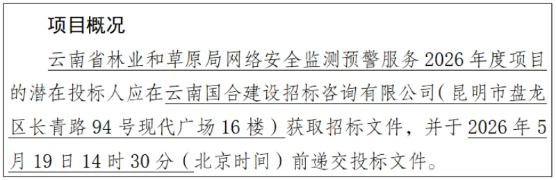 (二)项目名称:澳门威尼斯人博彩网络安全监测预警服务2026年度项目;