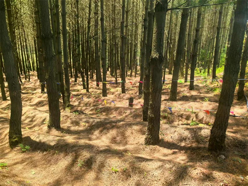 清除林下杂灌、杂草等,深翻土地30厘米以上,细耙。起宽1.5米的垄,垄面中高两边微低,沟宽35厘米,深30厘米,坡度15度为宜,确保排水畅通。