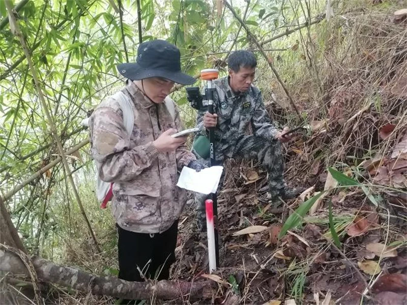 针对纳板河保护区地形复杂、植被茂密、部分区域通达性差等特点,项目组综合运用多种技术手段保障勘测精度。在视野开阔、信号良好区域,采用YNCORS网络RTK技术进行厘米级精度测量,确保定标点坐标数据准确可靠;在密林覆盖、卫星信号薄弱的区域,技术人员通过延长观测时段、多时段复测等方式提高定位精度,并结合地形图及周边明显地物进行综合判读,确保每一处定标点位置无误。同时,项目组严格执行测量规范,对每一个预设点位均进行现地复核、精确定位,并按要求填写定标点登记表、拍摄现场影像资料,做到数据可追溯、过程可查验。作业过程中,技术人员严格遵守生态保护要求,尽量沿现有林道行进,减少植被破坏,并对施工垃圾实行“零遗留”管理。