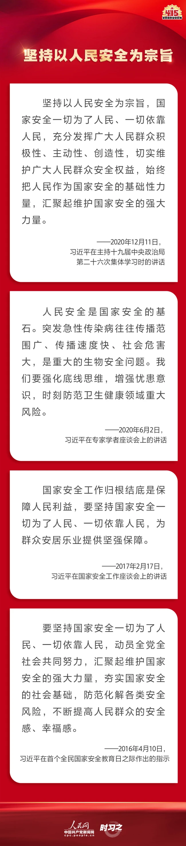 备豫不虞,为国常道。实现中华民族伟大复兴的中国梦,保证人民安居乐业,国家安全是头等大事。2022年4月15日是第七个全民国家安全教育日,让我们一起回顾习近平总书记在不同场合就维护、筑牢国家安全观发表的一系列重要论述,增强维护国家安全的责任感、使命感、紧迫感。